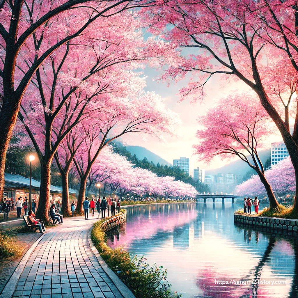 🌸 호수를 따라 산책하며 벚꽃을 감상할 수 있는 명소로, 가족이나 연인과 함께하기 좋습니다.